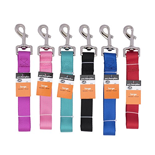 ReleaseDate : 2016-02-22 Studio : STOUT STUFF LLC Publisher : STOUT STUFF LLC Binding : Misc. Product Description Pet Champion Classic Large Dog Leash, Royal Pet Champion Classic Large Dog Leash is the perfect fit for your classic pet. The leash is manufactured with 1 inch wide 100% high-grade polyester allowing the carefully selected colors to truly pop when your pet is wearing the leash. The leash attachment clip is constructed with 100% pure steel for superior strength and durability when dealing with even the hardest of pullers. Remember when sizing your pet's collar to leave at least two fingers worth of space. Matching Pet Champion harnesses and collars are sold separately and look great when used together. Be sure to check out all of Pet Champion items including Collars, Leashes, Harnesses, Tie Outs, Rope Toys, and more on Amazon! Availability: Midnight Black: Small, Large Royal Blue: Small, Large Cherry Red: Small, Large Pink Lemonade: Small, Large Magenta Purple: Small, Large Sapphire Teal: Small, Large Sizing: Small: 3/8 inch x 5 feet Large: 1 inch x 5 feet. 0