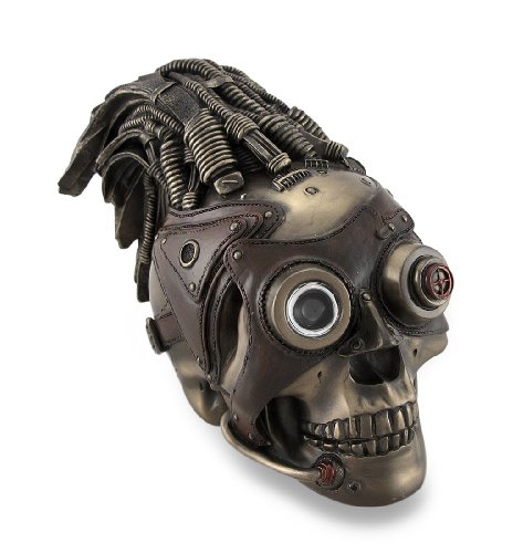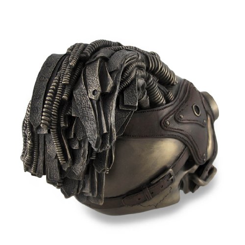 Resin Head Sculptures Bronzed Steampunk Skull Sculptural Industrial Statue 4.75 X 6 X 8 Inches Bronze
