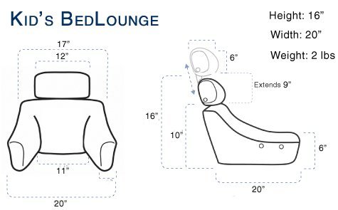 It is finally here! Everything you love about the BedLounge we magically shrunk to fit our youngest prince and princesses, or should we say pirates, superheroes, ballerinas, and fairies. We know what you are thinking right now: "Finally! I can claim my favorite BedLounge back!" And you are right (well, unless your pet claims it from you). Children love their Kid's BedLounge! We've tested it. The Kid's BedLounge is super lightweight (under 2 pounds) so kids can easily carry it around, because we know that their favorite spot could be anywhere - under the table, on the floor, in the closet, in the tree house, the RV, in bed, etc. Also, we designed it so the headrest "grows" with your munchkin (extends up to 9"), as we know that keeping up with outgrown clothes and shoes is already a hassle. And since we know kids like it messy at times (and you don't), our covers are removable and machine washable for easy fixes of any "oopsies" during snacking, painting, drinking, writing, #1 and #2 "accidents," or naps' drool. Our covers are made of luxurious microsuede fabric that kids love. Currently, we have them in Lion King Beige, Sea Turtle Teal, Flamingo Pink, and Elephant Gray colors. Please check our listings often as we will be adding more colors to our collection soon. Your youngster has an older sibling? No worries. Our Big Kid's Lounger (9 - 14 years) is coming soon. Product Details • Made in the USA • Light weight: Under 2 lbs • Size: 2T - 9 years • Product Dimensions: Height 16", Width (in between armrests) 11", Length 20" • Adjustable headrest - extends up to 9" • Removable & Washable Cover • Variety of Colors AvailableFeature