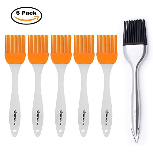 UETECH Basting Pastry Oil Brush, High Temperature Resistant BBQ Grill Silicone Brush for Grilling Marinating Baster and Barbecue Utensil Desserts Baking(6 pack)