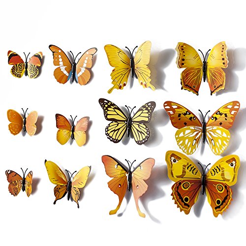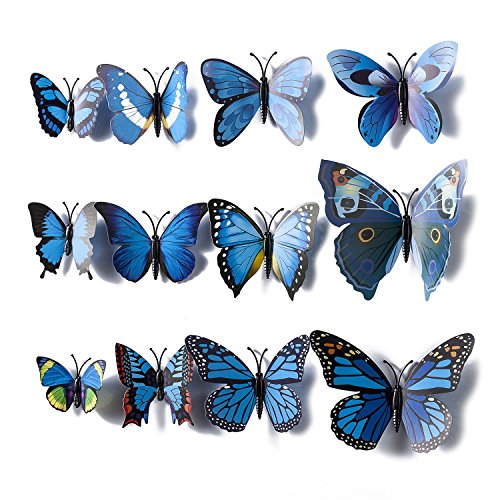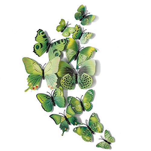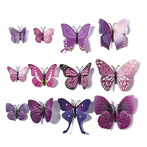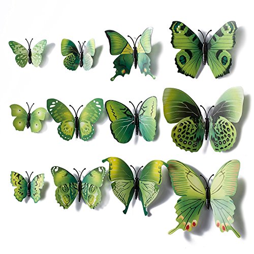 -. Feature : 12 pcs Green Blue Purple Yellow 3D butterfly stickers random mixed packing / A perfect gift for any special occasions like Christmas, wedding, birthday, anniversary,engagement.. / Perfect design. Roundly includes two large ones in size 11*9.5 cm, 6 medium ones in size 9.5*8.5 cm, / Use different colors or the same color butterfly put on a variety of shapes, very beautiful