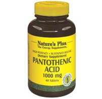Pantothenic Acid 1,000mg Time Release 60 Sustained Release TabletProduct DescriptionSometimes referred to as Vitamin B-5, Pantothenic Acid has been studied closely for its apparent role in helping metabolize a range of food types and for the nutritional support of nervous-system signal transmission. Nature's Plus uses the most current, controlled techniques to prevent the damaging effects of moisture, light and oxidation for all its products.