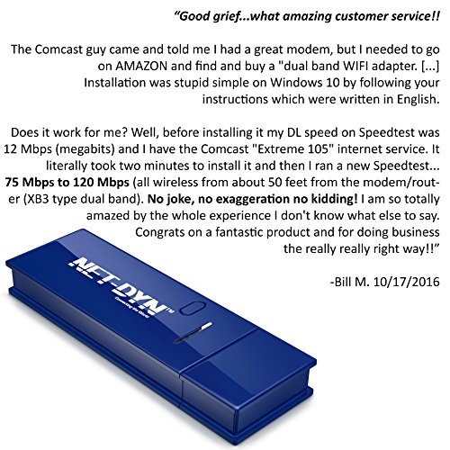 Top Dual Band USB Wireless WiFi Adapter, AC1200, 5GHz and 2.4GHZ (867Mbps/300Mbps), Super Strength So You Can Say Bye to Buffering, for PC or Mac, by NET-DYN