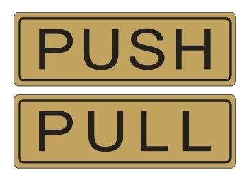 - Horizontal Push Pull sign measures 5.1" x 1.6"