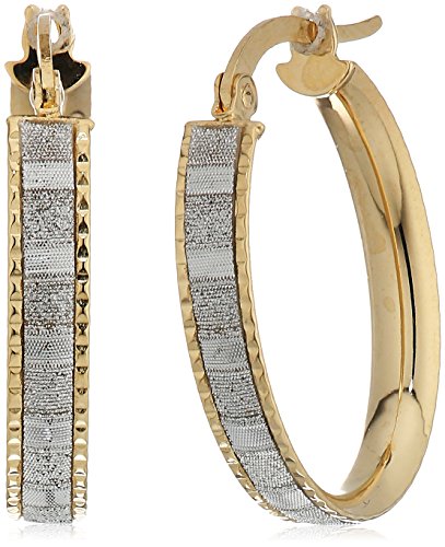 14k Italian Yellow Gold Baguette Glitter Hoop Earrings