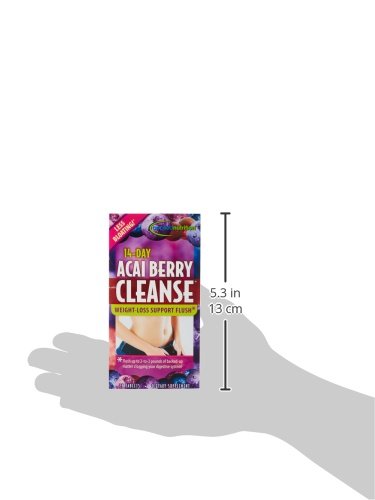 14-day acai berry cleanse: lose the bulge & the bloat with a powerful natural cleansing & antioxidant formula. 14-day acai berry cleanse is scientifically formulated to cleanse your digestive tract and get rid of any excess matter that could be clogging your system. in just days, you can experience increased regularity, reduced bloating and a flatter abdomen. contains blueberry, mangosteen, pomegranate and lychee, along with acai, which provide a powerful antioxidant blend, to protect your digestive tract from harmful free radicals. this powerful herbal formula features cascara sagrada, slippery elm and ginger to gently flush away excess waste and toxins, cleansing your digestive system and enhancing healthy intestinal function. at the same time, it comfortably clears away any excess weight that may be trapped in your colon. experience how only 14 days of cleansing can give you: increased regularity; less bloating; a cleaner digestive tract. 14-day fat burn cleanse gives you the boost you need to jumpstart your weight-loss plan! contains thermogenic power combined with easy cleansing and detoxification. this special two-week formula has been scientifically developed to boost your body's ability to burn fat (thermogenesis) and calories.Feature
