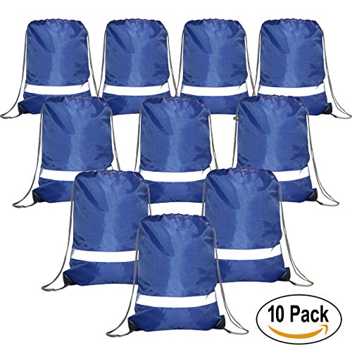 Drawstring Backpack Bags Reflective 10 Pack, Promotional Sport Gym Sack Cinch Bag (Royal Blue,Black,Red,Green)