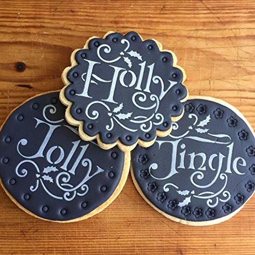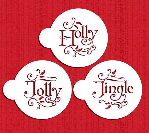 Studio : Designer Stencils Publisher : Designer Stencils Binding : Kitchen Product Description Perfect for Christmas! Our whimsical Holiday lettering cookie stencil set includes three different words- Holly - Jolly - Jingle. Each fits within 2.75" circle. Stencils are made of durable 10 mil food grade plastic for high-quality, professional use. 0