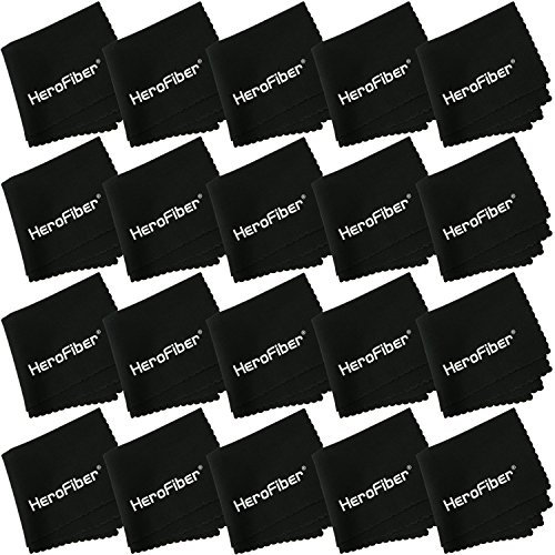 HeroFiber Ultra Gentle Cleaning Cloth for Cameras, Lenses, Smart Phones, Tablets, Gems and all other delicate items (Black) - 20 Pack