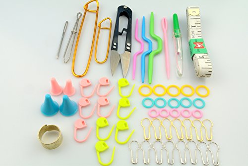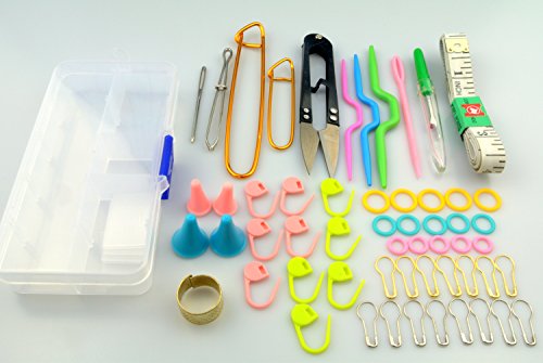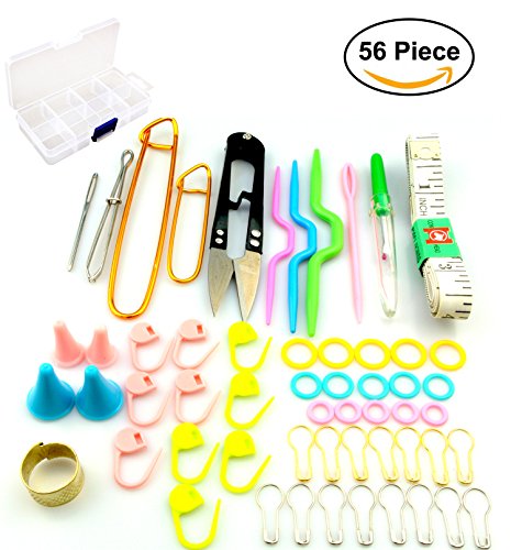 Maydahui Sewing Knitting Crochet Accessory Tool Kit with Case (Pack of 56) - Stitch Holders,lock markers,circle marker,knitting sewing needle,scissors,Measuring Tape etc