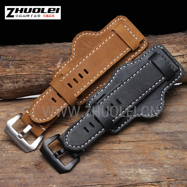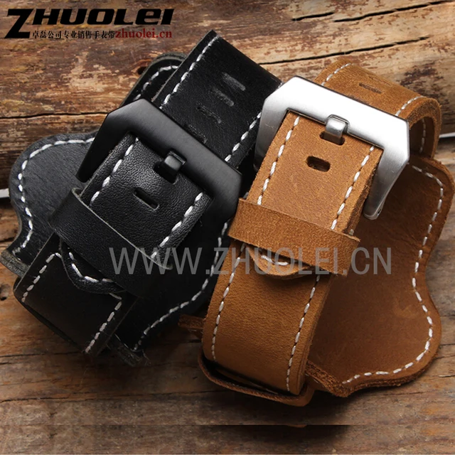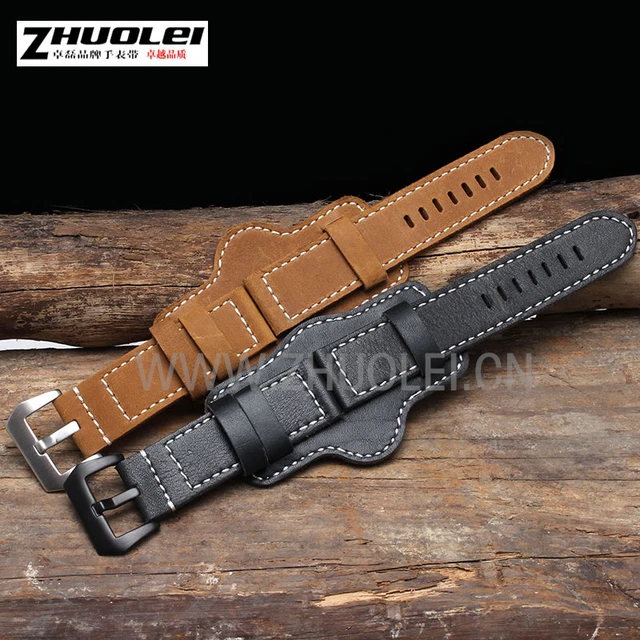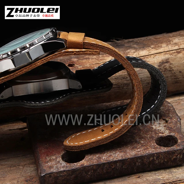 | [해외]높은 품질 22 미리메터 24 미리메터 정품 가죽 손목 트레이 팔찌 스테인레스 스틸 버클 수제 시계 스트랩 액세서리 |