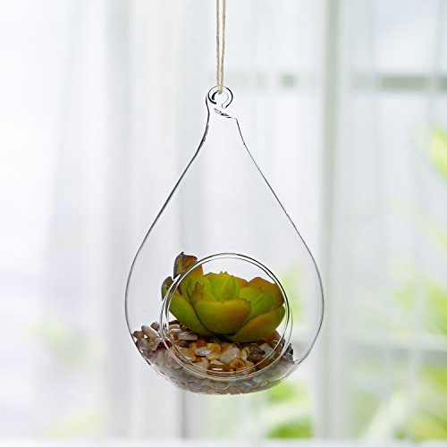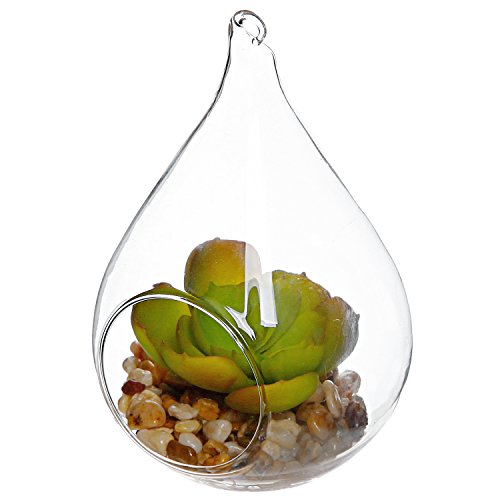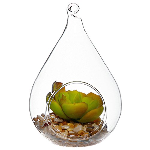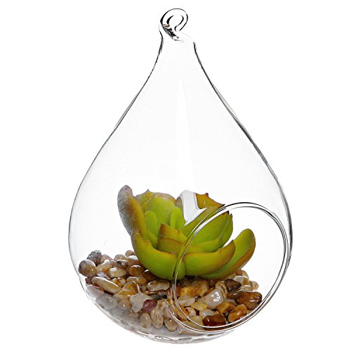 Charm guests with this elegant plant display globe. Made of clear glass, this display features a bright green artificial succulent plant nestled on a layer of multicolored river pebbles in a clear glass globe. The globe has been fashioned into a teardrop shape that perfectly complements the shape of the succulent plant, and the loop at the tapered top of the teardrop shape can be used to hang this ornament anywhere inside or outside your home. This unique plant display is sure to bring a fresh touch of natural-looking charm and sophisticated style anywhere it's displayed.**Official MyGift® product.**