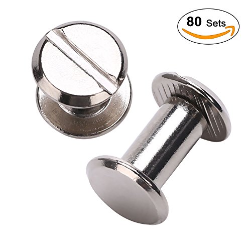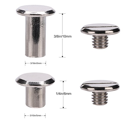 YMAISS 80 Sets Chicago Screws 2 size 1/4,3/8in Screw Posts Bookbinding Posts Binding Screw Chicago Button Post Rivets Screw Belt screws Leather Photo Albums Screw Round Flat Head, Silver Color