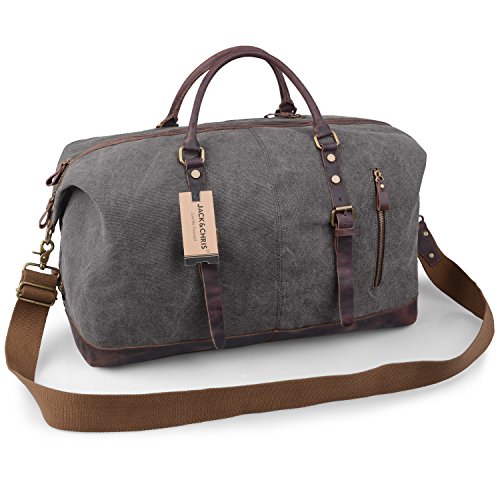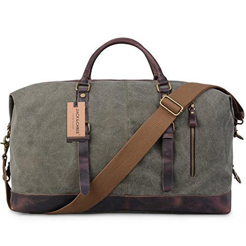 -. Title : Jack&Chris Canvas Leather Travel Tote Duffel Shoulder Handbag Bag CB1004
