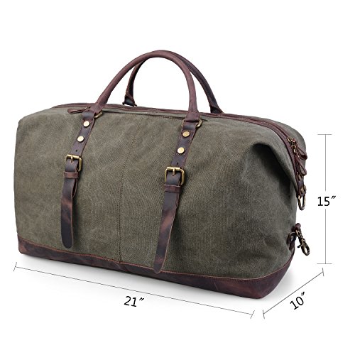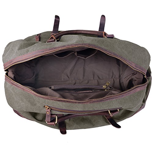 -. Feature : Dimension: ( L x H x W ) 21 x 10 x 15 inches / 55 x 25 x 39 cm / 1 x outter side zipper pouch, 2 x inner wall pouch, 1 x large compartment / Leather top handle, zipper closure, adjustable canvas backpack strap can be applied to different height and body type. / Made from high quality thick canvas, texture is soft, strong and durable, carry comfortable, multiple pockets make the classification more convenient. It's spacious can hold at least 2 - 3 days worth of clothes if necessary. / A great versatile outdoor duffle bag for the gym or weekend trips, also can be uesd in the daily travel.