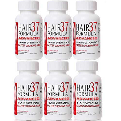 -. Feature : Hair Formula 37 Advanced Hair Vitamins for Faster Growing Hair and Healthy Hair Growth with Biotin for Stronger Hair Growth Grows Your Hair FAST! / Formulated by Hair Experts Who Know What Hair Needs to Grow Healthy and Fast in a Safe and Effective Amount / Grow Your Hair Faster! Up to Double Your Normal Hair Growth Rate Each month! / Packed Full of Hair Health Vitamins Biotin, Folic Acid, Amino Acids, Pantothenic Acid, Vitamin A, Vitamin C, Vitamin D-3, Vitamin E, Vitamin B-1, Vitamin B 12 / 2 Easy to Swallow Capsules Per Day. 6 bottles = 6 month supply GREAT Savings!