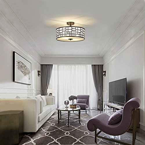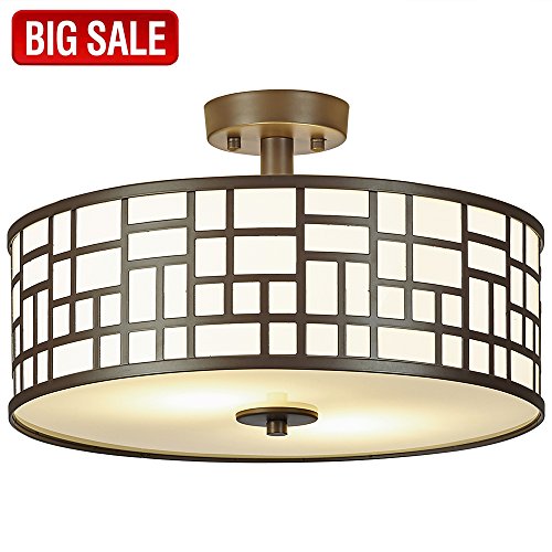 SOTTAE 2 Lights Outdoor/Indoor Modern Oil Rubbed Bronze Finished Metal Hanging Fixture lighting Flush Mount Ceiling Light,Ceiling Lamp( Diameter 16")