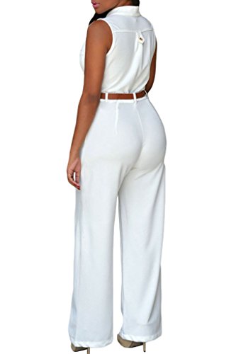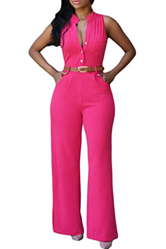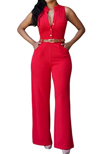Dearlovers Women V Neck Button Down Top Belted Wide Leg Jumpsuits