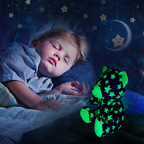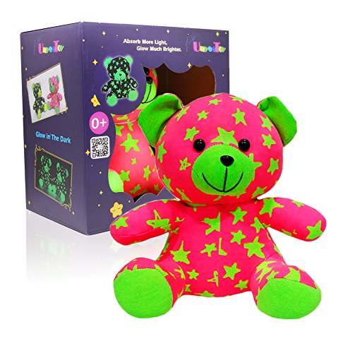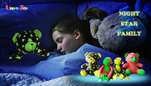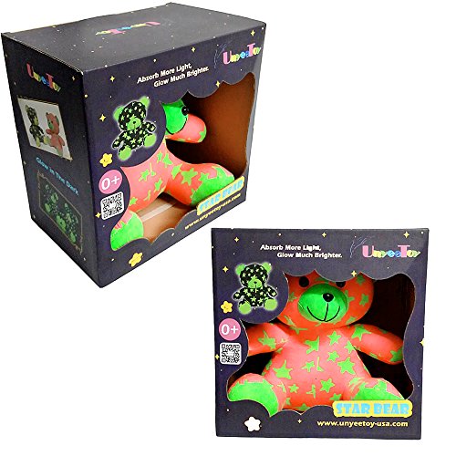 -. Feature : Hi guys, I'm sister bear from UnyeeToy® Night Star Family. My brother is in GREY and you can find him in Unyee Pro store if you'd like to meet him. We will have Night Star Monkey brother and sister upcoming. If we are loved by you guys, we believe that we will have more and more members to join in our Night Star Family. / Best Bedtime Companion and Soother - Luminous Star bear in the dark relieves a child of her emotional insecurity sleeping ALONE at night, and the best companion when she loses sleep during nighttime, helping her get rid of loneliness and negative mood. / Glow In The Dark by Nature - This is our nature feature and last like forever. Unlike other LED stuffed toys with limited service life who have to rely on batteries and electricity to glow, our family ONLY absorb light rays that enable us to shine at dark, including both sunlight and lamp light. / Glow All Night Long and Never Dazzle to Your Sleepy Eyes - After being fed with sufficient light, we are able to glow gently along the dark night from bright to less bright (not die out). You won't be bothered with my brightness intensity impeding you falling asleep, neither glaring into your opening eyes when you wake up at midnight. / Safe For Age 0+ - Complied with European Standard on Safety of Toys, We are strictly tested to be 100% safe for human beings. Advised gift For Toddlers Aged 1 Plus - My size is too big for a newborn baby to grip and play with.