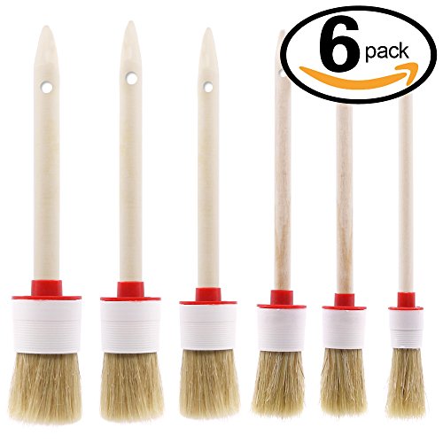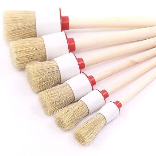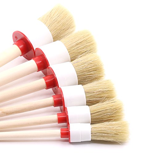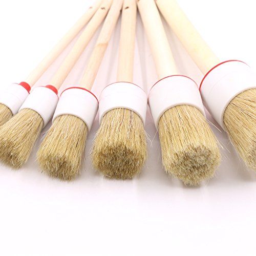 -. Feature : ★ ASSORTED SIZES --- We have preparded 6 SIZES brushes for you, these different sizes brushes will can meet all you needs. You can choose any one to suit your needs, enough length for easily exploring and reaching into the lug nuts, narrow or tight space. / ★ HIGH MATERIAL --- These brushes are made of boar hairs, The tip end of each bristle is naturally split into two or more branches called the flag, That makes brush softer and they are relatively scarce and expensive. So definitely, these are tools every detailer must have. / ★ DURABLE AND LONG LASTING BRISTLES --- Our detail brushes are designed to meet the demanding needs of car care enthusiasts and professionals. / ★ GOOD WORKING --- Wooden handles are lacquered, so humidity will not crack the handles as wood tend to. This car detailing brush set is great for everything from getting crumbs out of your seat crevices to dusting air vents or washing emblems. / ★ PERFECT SIZE FOR ANY JOB --- The 1.25" large diameter head and 2'' long bristles are a perfect fit for everything from lug nuts to interior vents. The 8'' long handle helps with tough-to-reach spots.
