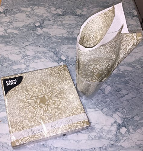 Paper Disposable Napkins, Lunch size, 20 pack, "Decorative Gold Design" 3-ply 1/4-Fold 13" x 13" Great for Weddings/Engagements/Parties & Catering events (Rosette)