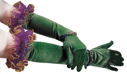 -. Binding : Apparel -. Brand : Forum Novelties -. Department : mens -. Feature : Masquerade costume Mardi Gras gloves, green with multi-colored feather trim and attached bracelets / Use them to dress up any outfit for a grand celebration / One size fits most adults / Ideal for Mardi Gras celebrations, costume parties, and more / Made by Forum Novelties, a leader in costumes and novelty products for more than 30 years -. Genre : Holiday - Mardi Gras -. IsAdultProduct : 0 -. Label : Forum Novelties Costumes -. Manufacturer : Forum Novelties Costumes -. ProductGroup : Apparel -. ProductTypeName : ADULT_COSTUME -. Publisher : Forum Novelties Costumes -. Studio : Forum Novelties Costumes -. Title : Forum Masquerade Party Costume Accessory