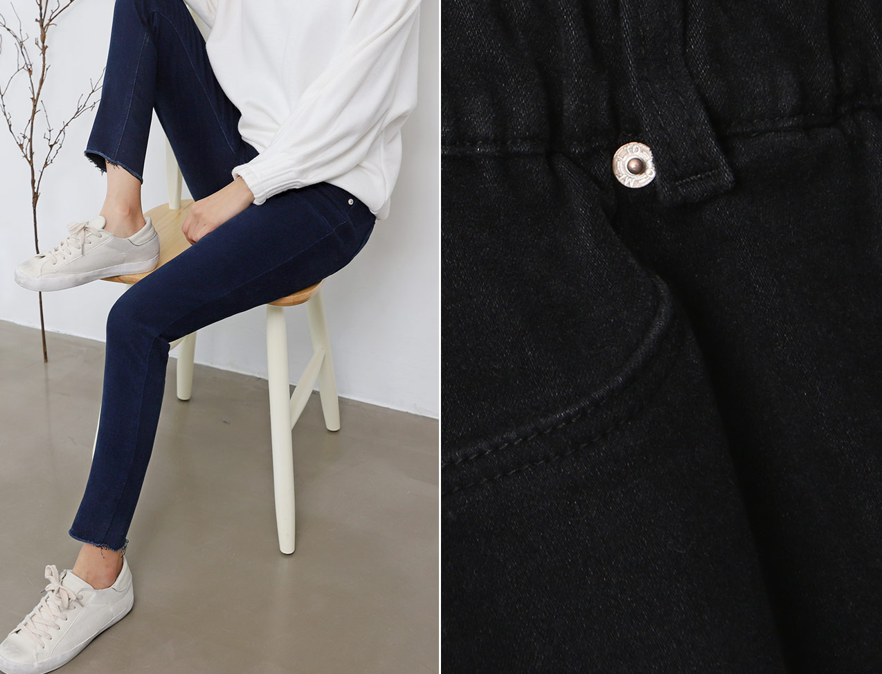 상세사이즈 : S - 총장 91cm/ 허리 30cm/ 힙 34cm/ 밑위 24cm/ 밑단 11cm