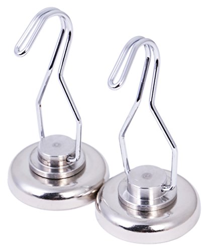 Magnetic Metal Swivel Hooks - Heavy Duty Hooks, Holds up to 60 Pounds for Refrigerators, Magnetic Surfaces - 2 Pc Chrome Set