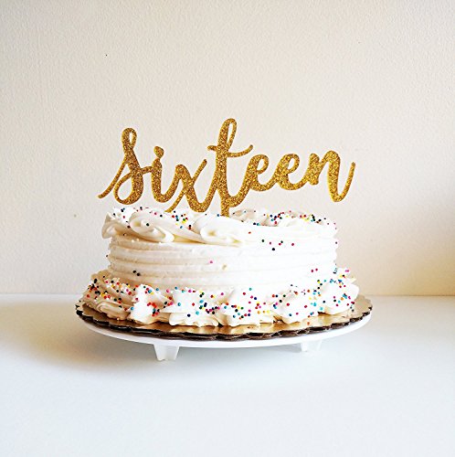 Sixteenth Birthday Gold Glitter Cake Topper