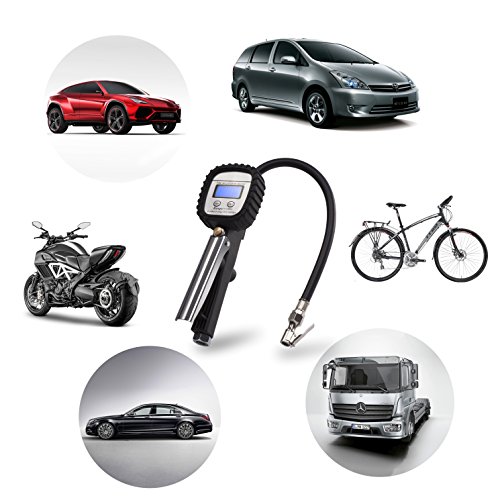 ✍ • VIABLE FOR ALL VEHICLES: The design of the gauge coupled with its wide range of measurement allows for use in a wide variety of tire sizes for different types of vehicles; from Construction vehicles, Large trucks, SUVs and Cars to Motorcycles and Bicycles.