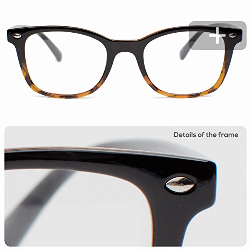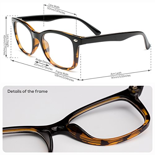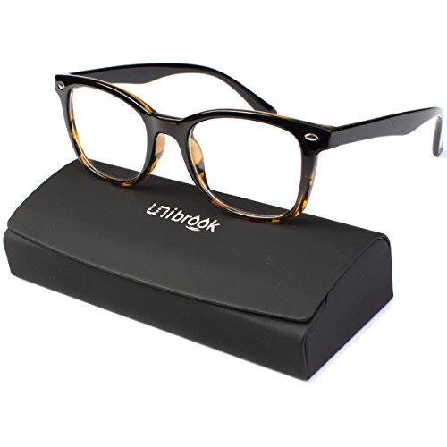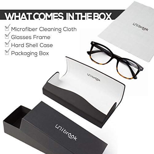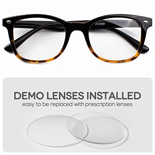 Frame Details Gender: Unisex Frame Type: Full-Rimmed Frame Material: TR 90 Frame Size: Large 50-20-141 Frame Weight with Demo Lens: 22 g /0.776 oz Frame Color: Black Brown Frame Shape: Rectangular Design Style The lenses are almost rectangular, with slim frames. The frames are plastic, and black from top to middle, while the bottom half of the frames in designed in a black and very light golden brown pattern. At the extreme end of the frames, there's an oval silver embellishment. The plain black plastic handles are thick and they get slimmer towards the part that sits on the ears, and then bend downwards. They could double as reading glasses and a fashion accessory. Special Note to Our Dear Customers Please kindly understand that the glasses lenses you will receive are what we call "demo lenses" which are designed to simulate lenses showing what the frame will look like with lenses. Demo lenses are non-prescription lenses and are typically fragile; therefore they are not for daily use in your eyewear and are supposed to be replaced by prescription lenses. Our customers buy unibrook to save a great deal for their prescription eyewears while enjoy our large collection of varying styles of quality eyeglasses frames and accessories. Feel free to contact us if you need prescription lenses included or take your Unibrook eyewear frame with demo lenses to any optical shop to have your prescription installed. 0 |
