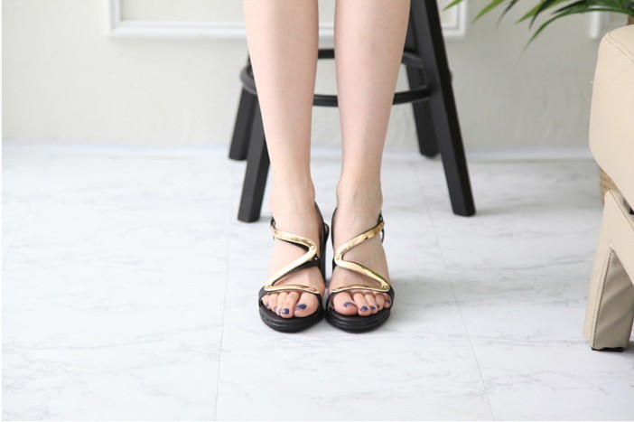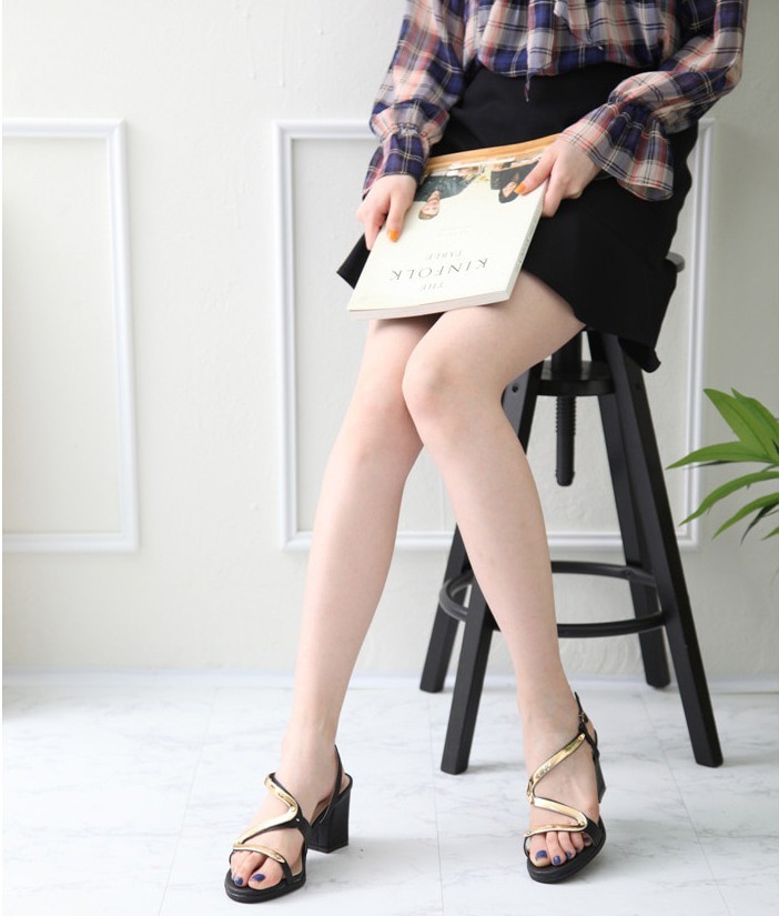 商品名:サンダル レディース 太ヒール チャンキーヒール ゴールド キラキラ 2018 春 ファッション 靴 婦人靴