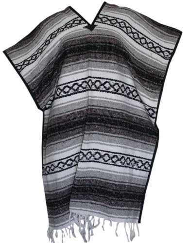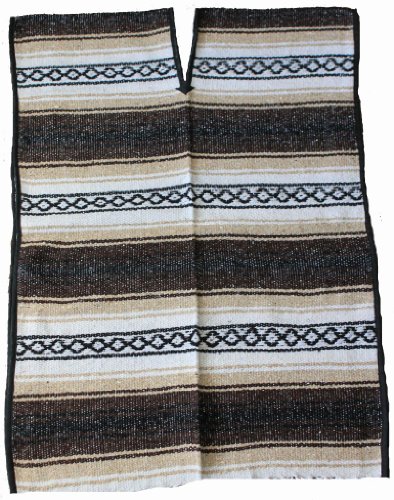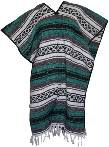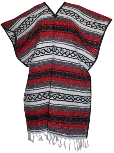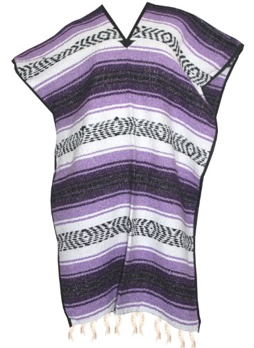 Binding : Apparel Product Description A fun and festive poncho. Great as a costume or for everday use. Made in Mexico of fine acrylic fibers. This poncho is available in 8 different colors and is sure to brighten up any room. Measures 27" in width by 36" long (folded). It is meant as a one size fits all, but it is narrow, so it does not go down arms. 0