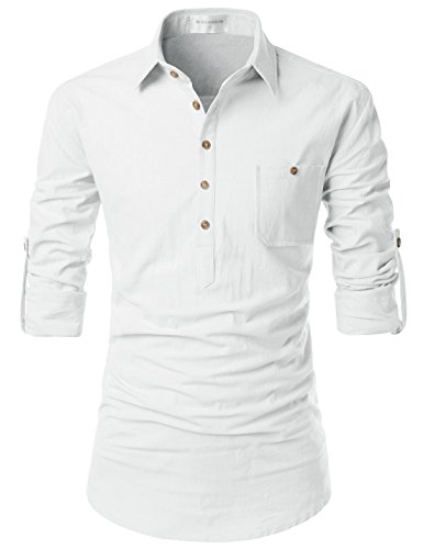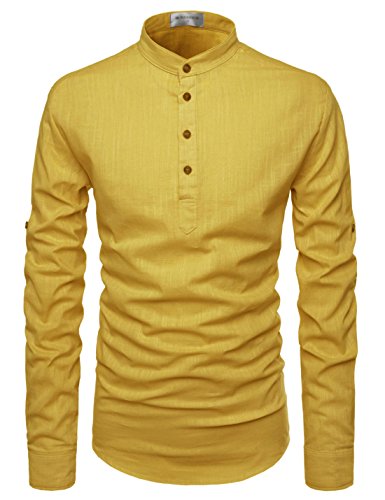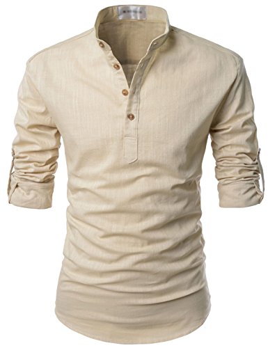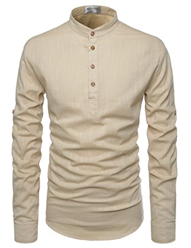 -. Title : NEARKIN Beloved Men Henley Neck Long Sleeve Daily Look Linen Shirts