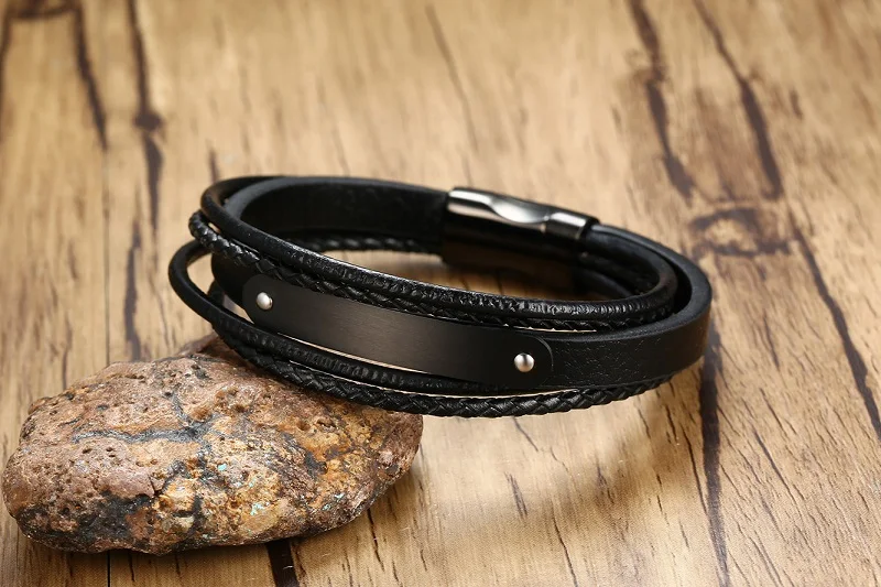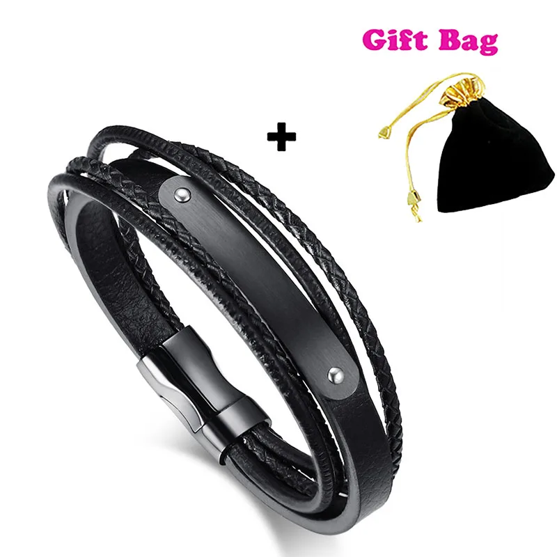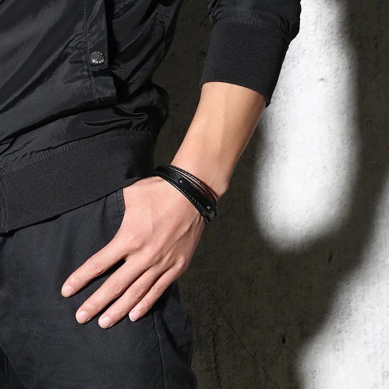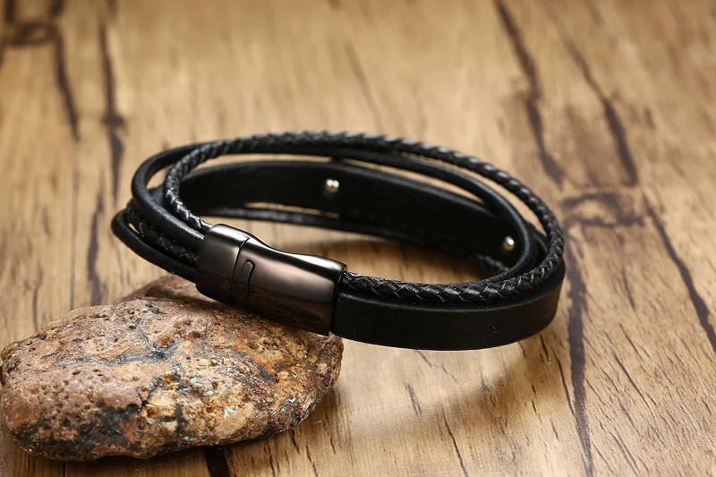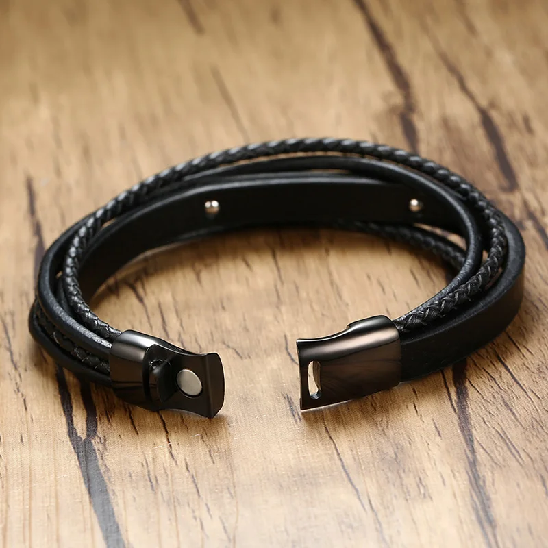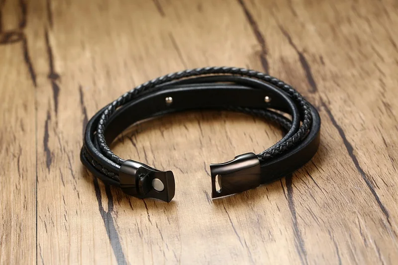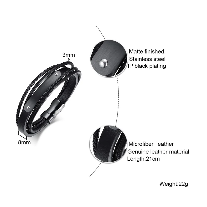 Feture:Black Multi Layer Genuine Leather Bracelets for Men