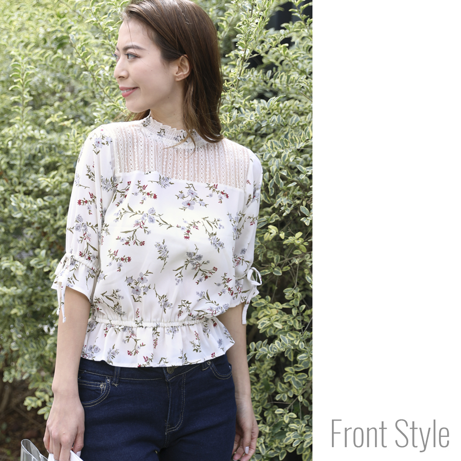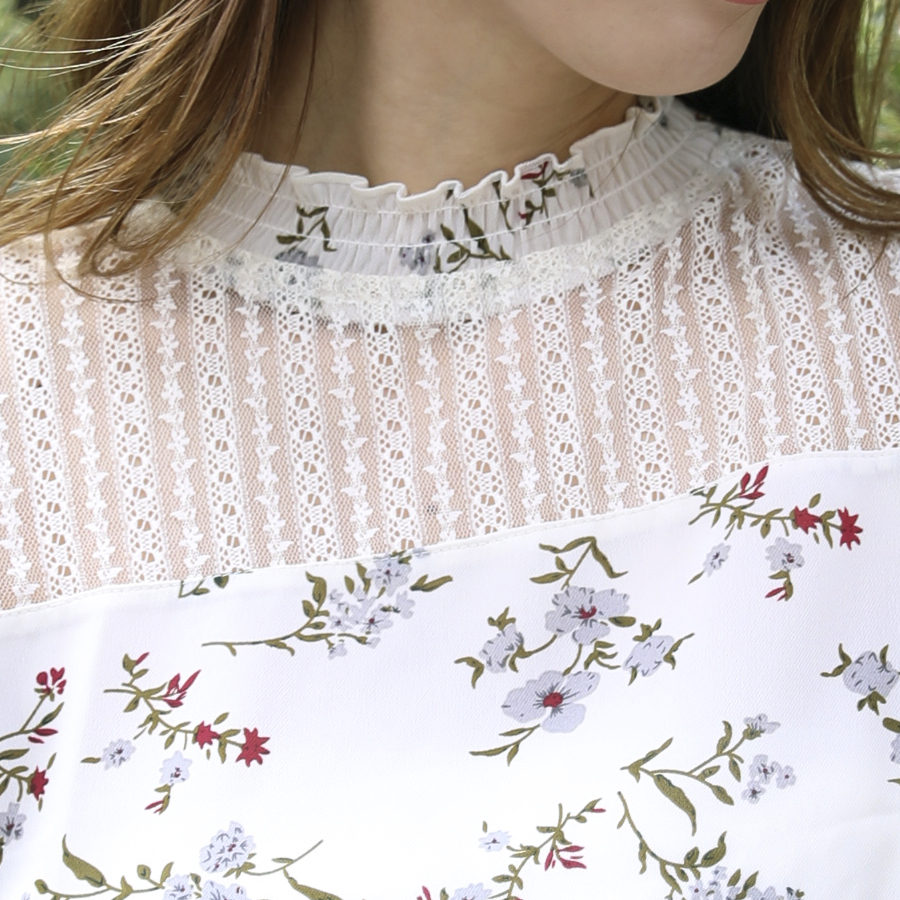 プチハイネック&デコルテレース使いで首元スッキリ見せのデザイン★