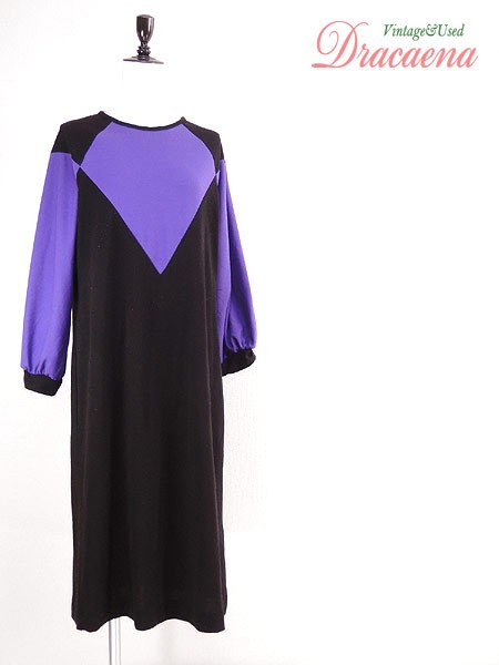 Ladies ブランド- カラー黒・紫 メール便不可 コンディション★★★ 素材ポリエステル 表記サイズ12 実寸サイズ 着丈 110 cm 身幅 53 cm 袖丈 60 cmラグラン袖の為、襟元から袖先までの計測 ※ウエスト・ヒップ以外は平置き採寸【code】#d