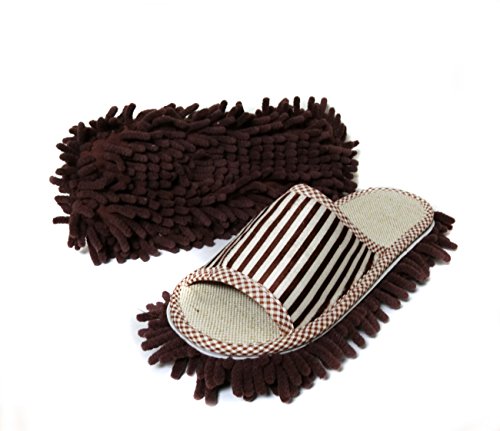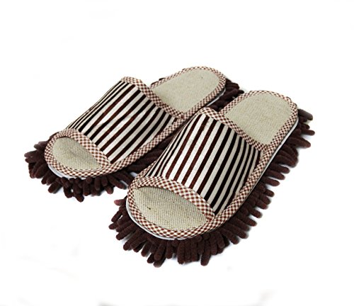 Friendly House Women's Microfiber Floor Cleaning Mop Slippers with Stripes (Suitable for US women size 7-9, Coffee)