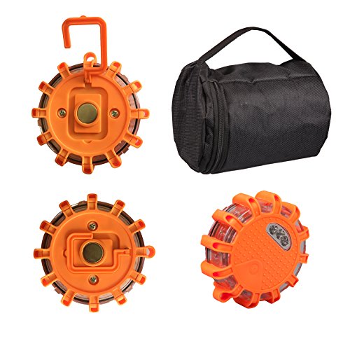 Boli LED Road Flares Emergency Disc Roadside Safety Light Flashing Road Beacon for Car Truck Boat with Storage Bag ( Pack of 3 )