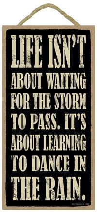(SJT94106) Life isn't about waiting for the storm to pass. It's about learning to Dance In The Rain. 5" x 10" wood sign plaque