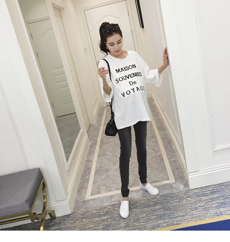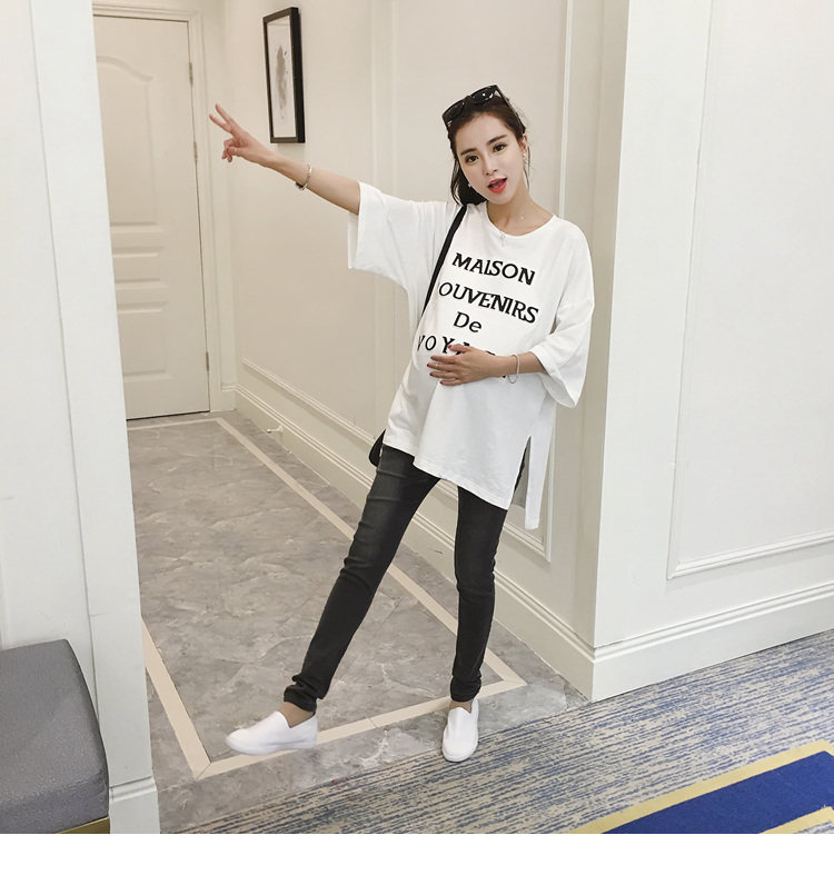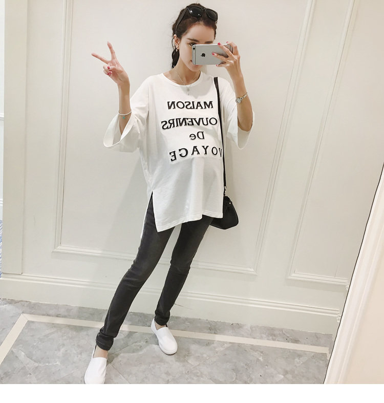 孕妇春装上衣新款韩版白色体恤打底衫七分袖孕妇宽松t恤