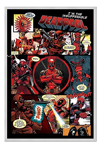 -. Title : Deadpool Comic Panels Poster Magnetic Notice Board Silver Framed - 96.5 x 66 cms (Approx 38 x 26 inches)