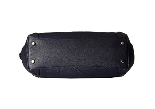 Leather. Inside zip, cell phone and multifunction pockets. Imported.