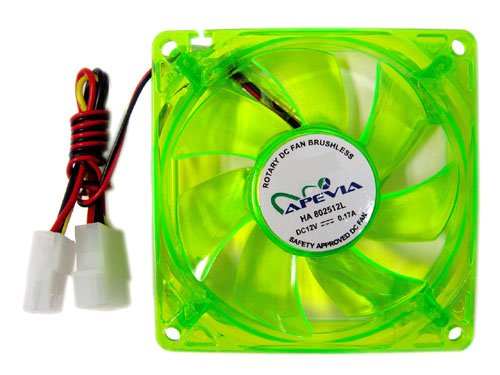 - APEVIA 80mm 4pin Silent Green LED Case Fan