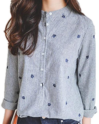 -. Feature : リーフをモチーフにした刺繍と、細かめなストライプ柄が印象的な、今季のトレンドをぎゅっと凝縮した刺繍トップスです。ボタニカルコーデにもおすすめです。スカートにもパンツにも合わせやすい丈で、コーデに悩む心配なし! 落ち着いたベーシックカラーのお色です♪ お手持ちのボトムスを合わせて着回しコーデを楽しんでください☆ / ラウンドネックが大人カッコいいシルエットを演出。普段着だけでなく、リゾートや行楽、おでかけやちょっとしたパーティーにも着まわせる、シンプルながらもおしゃれな1枚。ごわつきにくいので、アウターとのコーデもしやすく、秋から冬、春~初夏にかけて、長く着ていただけるITEMです♪ 袖をロールアップすれば、暑い季節でもOK! / カラー:灰色(グレー) メイン素材:コットン セット内容:シャツ サイズ:S、M、L、XL(※サイズは商品画像、商品説明に記載しております。海外製の為、日本の一般的なサイズ感よりもやや小さめに作られている場合がございます。ご購入いただく際は、サイズ表をご確認くださいませ。) / デイリーに使えるブラウスは、何枚あっても便利♪ シンプルに決めたいときはワンポイントでキリッと凛々しく、キュートに着こなしたいときは、花柄や丸襟(ラウンドカラー)のものや、フリルやタック、ギャザーの入ったものがおススメ。しわになりにくく、着心地もいい高品質なブラウスは、スカートやパンツなどのボトムスと相性バツグン。トレンドのデニムと合わせて、きれいめカジュアルにコーデしたり、ふんわりプリーツスカートと合わせてゆるふわガーリーコーデにと、いろいろ着こなせます。 / AngelMoon(エンジェルムーン)はブラウス、ワンピースをはじめ、チュニック・シャツ・カットソー・セーター・カーディガン・トレーナー・パーカー・キャミソール・タンクトップなどのアウターやインナー、タイトスカート・ミニスカート・ロングスカート・ワイドパンツ・ガウチョパンツ・スキニー・レギンス・サブリナパンツ・チノパンなどのボトムス、ウィッグ、ストール、スカーフ、バッグなどのファッション小物など、オールシーズン着られるものや、春、夏、秋、冬、の季節に合わせ、年齢を問わずおしゃれを楽しんでいただける、トレンドを押さえたレディースファッションを取り揃えています。