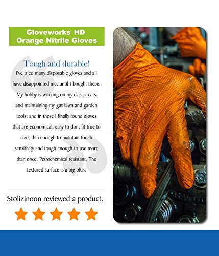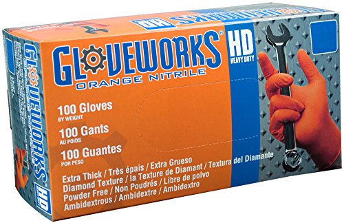 AMMEX - GWON48100-BX - Nitrile Gloves - Gloveworks - Disposable, Powder Free, 8 mil, XLarge, Orange (Box of 100)