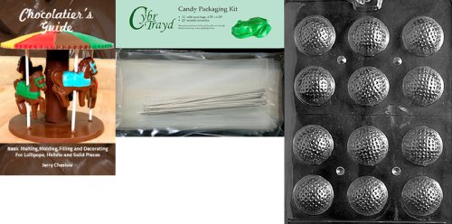 Cybrtrayd Golf Balls 3D Chocolate Mold with Chocolatier's Bundle, Includes 25 Cello Bags, 25 Silver Twist Ties and Chocolatier's Guide