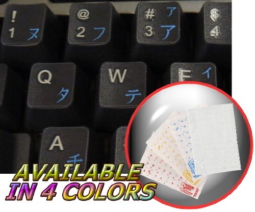 JAPANESE KATAKANA KEYBOARD STICKERS WITH BLUE LETTERING ON TRANSPARENT BACKGROUND FOR DESKTOP, LAPTOP AND NOTEBOOK