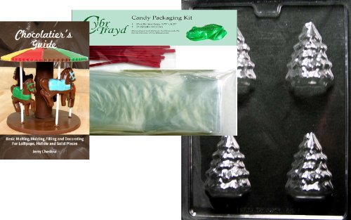 Cybrtrayd Christmas Tree Chocolate Mold with Chocolatier's Bundle of 25 Cello Bags, 25 Red Twist Ties and Chocolatier's Guide