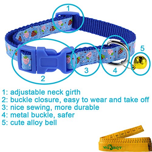 Adjustable by the plastic buckles, fits your pet better. Strong break-away closure, easy to wear and take the collar off. Cute & beautiful images, make your pet more adorable.